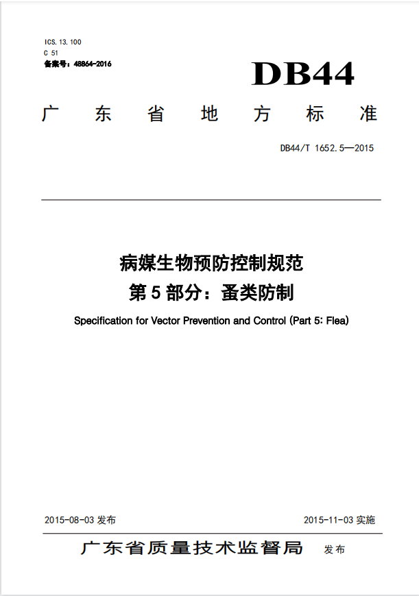 DB44T+1652.5-2015+病媒生物預防控制規范+第5部分+蚤類防制2022-12-01